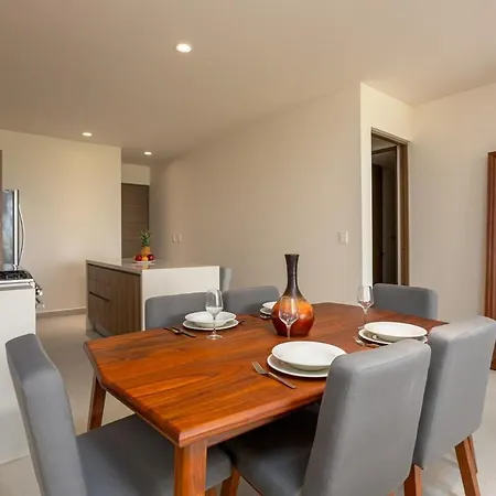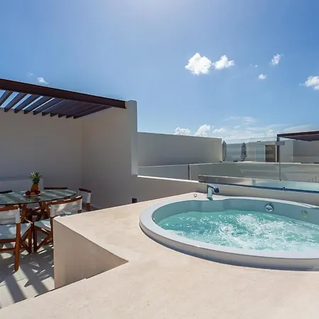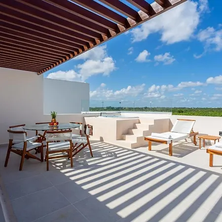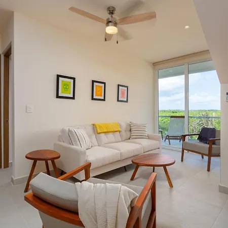 Tijdens een verblijf in Luxurious Penthouse By The Beach Akumal appartement van 90 m^2 kunnen gasten zich ontspannen op een terras op 2-km afstand van het Strand van Akumal. Het appartement biedt uitzicht op de tuin.